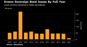Η Ελλάδα  μέχρι σήμερα έχει βγει στις αγορές εκδίδοντας ομόλογα ύψους 8,85 δις $ σύμφωνα με τα στοιχεία του Bloomberg, μειωμένα κατά 10% σε σχέση με πέρσι.