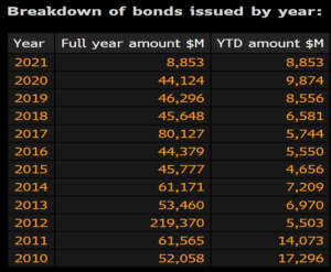 • Το 2021 οι παγκόσμιες πωλήσεις αυτών των ομολόγων θα είναι μεταξύ 120 με 150 δις $, συγκριτικά με α 8,9δις $ αντίστοιχων εκδόσεων πέρσι καταλαβαίνει κανείς την μεγάλη διαφορά.